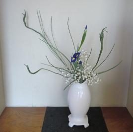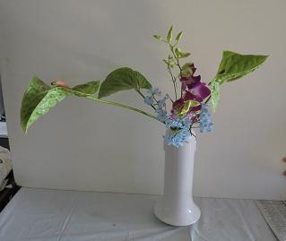 11月最初のお稽古ですが、今週末は支部研究会なのでそのお稽古です。今月はほとんどのクラスで瓶花です。2級の課題ははんの木、アイリス2、小菊3「瓶花・花型自由」 きょうのはんの木は実がまだ硬い緑色の状態で、もう少し茶色の可愛い実がついていてくれると良かったのですが3級の課題はグラジオラス3、薔薇3「瓶花・直立型」 花物の直立型なので留めやすいかと思ったら、グラジオラスは曲がっているものが多く、思ったようにいけられないようでした師範1の課題はクラスペディア3、ガーベラ2、レザーファン1「花意匠・かたむけるかたち」 きょうはお天気が悪く、部屋が暗かったので、電気をつけているのですが、LED照明って写真を撮るのには暗い感じになるのかしらこっちも見てね 「おばさんのつぶやき」 ブログランキングに参加しています。 きょうもポチっとお願いします