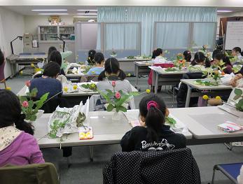 3、4日前の寒さが嘘のように、小春日和の昨日・きょうです。きょうは、こども教室がありました。前回はハロウィン、次回はクリスマスの花ですが、今回は特に行事を意識したお花ではないので、季節のものを…とクラスペディアとブバリアを希望したのですが、先日の研究会で皆なくなってしまったのか入荷できずに季節感のない花材になってしまいました本科さんの分はそれでも何とかクラスペディアを用意していただきました。クラスペディア、薔薇、玉シダ「花意匠・ひらくかたち」 こちらは皆さんお手の物で、「簡単だった!」という言葉まで飛び出しましたきょうから本科進級のメンバーが2人いたので、少し簡単なものにしたのは確かですが初等科さんはドラセナ・ゴッドセフィアーナ、薔薇「花意匠・かたむけるかたち」 今年6月スタートのクラスはずっと「たてるかたち」をやってきて、きょうはじめて「かたむけるかたち」をしましたので、こちらは難しかったですゴッドという花材もまた初めてのかたむけるかたちにはなかなか難しいものでした。でも、最後にはみんなきれいに出来上がりましたこっちも見てね 「おばさんのつぶやき」 ブログランキングに参加しています。 きょうもポチっとお願いします