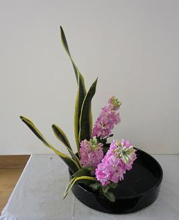 今年の初稽古は1月の支部研究会のお花です。毎年、初稽古には花びら餅を用意します。お茶の初釜などにも花びら餅だそうですが、きょういらしたお弟子さんで絵手紙を習っている方が、いつも果物などを描くのですが、お正月1回目は花びら餅を先生が用意していてそれを題材にして描いて、後いただくということだったそうです。絵手紙って私も以前から興味があったのですが、絵心が全然ないのでなかなか一歩を踏み出せないでいましたこのお弟子さんも最近始めたのですが、良い趣味ですよねさて研究会のお花ですが…3級のお花をいけた方が沢山いらしたのでまずはそれから。課題はサンスベリア5、ストック3「色彩盛花・直立型」 2級は土佐水木、薔薇3、霞草少々「瓶花・花型自由」 枝が曲がっているものばかりで苦戦していました傾斜型にいけたのですが、中間高に初めに使おうとした枝に失敗して新たに入れたものが主枝より太い枝になっていたので、本番ではそういうことが無いように頑張ってください師範科2期の課題は水仙1、スプレー薔薇1、ミリオクラダス少々「花意匠・たてるかたち」 これは、花意匠の花型を使って、水仙の作り方を勉強するための課題ですね。今回から師範2に上がるHさん、水仙は余分に取って練習しましたが、50分でいけられるかどうかもう少し練習が必要のようでした。 ブログランキングに参加しています。 きょうもポチっとお願いします