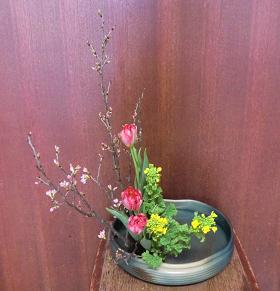 明日から学校が始まると言うことで小学校に花生けに行ってきました仙台市は2学期制なので、始業式はなく普通の朝会でスタートするらしいですがしばらく花意匠や花奏などをいけてましたので、普通の盛花にしました。規定寸法よりも長めですが、このくらいのほうが映えるようなので年も明けたので春らしい花にしましたチューリップや菜の花は角度が変わったり伸びたりするので迷ったのですが、やはり春なので、この小学校の学区内のお弟子さんにマメに覗いていただくことにします ブログランキングに参加しています。 きょうもポチっとお願いします
