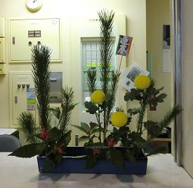 謹んで新春のお慶びを申し上げます皆様、今年もよろしくお願いいたします。これは、毎年マンション管理人室にいけているお花、今年は「ならぶかたち」です。昨年は管理人さんが変わりました。今までよりもずっとお若いご夫婦になりました。年末年始のお休みの間はこの後ろに管理室のブラインドが下りていますので、もっと見やすいですが、この写真はいけた日に撮りましたので、後ろの方が明るかったりして見づらい写真でしたこっちも見てね 「おばさんのつぶやき」 ブログランキングに参加しています。 きょうもポチっとお願いします