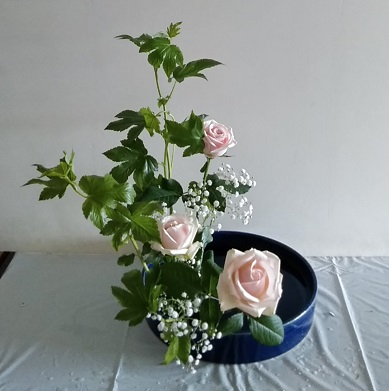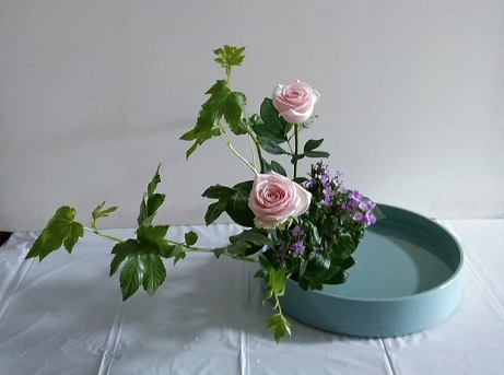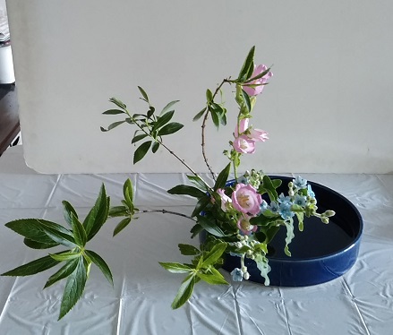 昨日に続き、きょうも一日中でした。昨日の土曜日から振り替えた方の方が多くなったという珍しい日曜日でした。 昨日と同じような花材です。 ベビーハンズで盛花にした方々は、直立と傾斜は枝を見て決めるようにと言ったら、2種でいけた中学生たちは傾斜型、霞草を入れた高校生たちは直立型にしたようでした。 瑠璃玉薊で「ならぶかたち」は、新様式花器の方と、昨日と同じで初めての方は半円花器で小さめのならぶかたちにしました。にほんブログ村 ブログランキングに参加しています。 きょうもポチっとしていただけたら幸いです