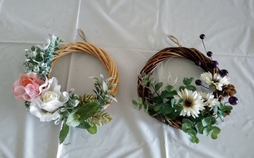 8月は暑いので、通常のいけばなと違うことをやったりしています。暑いということだけではなく、何年か前に、年中無休の花屋さんがお盆の後に年に1回だけお休みをするのですが、木曜日のお稽古日がその日に当たることがあり、生花以外のお稽古をしようと思ったのが始まりでした。今年は、クリスマスだけでなく楽しめるというリースを作ることにしました。 きっかけは、ミモザとパンジーの造花が付いた春のリースをいただきまして、これは花を変えればいろいろな季節で楽しめると思ったのでした。 材料を購入するとき向日葵も可愛かったのですが、もう夏のバージョンでは季節が終わると思ったので、通年タイプと秋のイメージで私が沢山購入してきた中から選んでいただきました。きょうは中高生など全員リース作りをしましたが、木曜日も希望の方だけやります。にほんブログ村 ブログランキングに参加しています。 きょうもポチっとしていただけたら幸いです