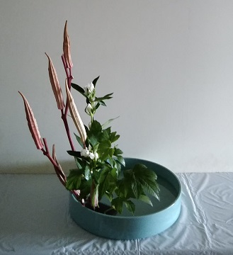 木曜日教室は、先日の土曜日と同じ造形の希望者とやはりいけばながしたいという方がいまして、それぞれになりました。 土曜日も希望は取ったのですが、全員リースを作ったのです。先日学校にも持って行ったオクラが面白いので、使うことにしました。そうしたら、お稽古中に宅急便で届いた「挿花」9月号にも載っていました 下のクラスの方には「瓶にいける」練習を2回目の方と初めて瓶にいける方です。 そして造形組土曜日と同じでいけばなより時間がかかり、今回は傍らにいけばなの方がいましたので、やはり後から来たのに先に帰るということになっていました。 にほんブログ村 ブログランキングに参加しています。 きょうもポチっとしていただけたら幸いです