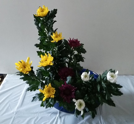 きょうは秋晴れの気持ちの良い日でした。が、週末は台風が直撃と言う予報が出ています。「地区別教授者研究会・東北地区」が仙台で予定されています。台風の状況によっては中止も検討されているようです。きょうは、瓶にいけるのを勉強中の方は初の「かたむけるかたち」その他は盛花にしました。 他県より地区別教授者研究会に参加予定の方は、天気予報や交通情報をチェックして、お気を付けて仙台までお出でいただきたいと思います。にほんブログ村 ブログランキングに参加しています。 きょうもポチっとしていただけたら幸いです