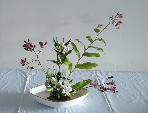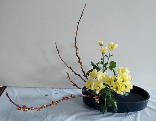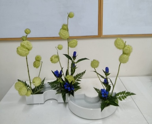 木曜日の教室は月に3回やっていますが、土曜日の中高生は月2回のお稽古です。親子でお稽古しているお母様は、木曜日に来たり調節して3回できるようにしていますが・・・。1回休むと月に1回になってしまうので、私の都合がつく範囲で振替稽古を提案しています。1週目に休んだ方が振替を希望したので、2週目に休んだ方にも声がけしました。親子でいらした方は、同じ傾斜型をしましたが、違う花材を用意しています。 本科さんの中学生は「かたむけるかたち」を。にほんブログ村 ブログランキングに参加しています。 きょうもポチっとしていただけたら幸いです