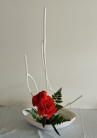 来週の土日は12月の支部研究会です。今年の12月研究会は講習会ということで、先生がいけて見せてくださってから会員がいけるスタイルなので、事前稽古はしなくてもいいのですが、1度は同じ花材を触ってから行きたい人が多く、お稽古することになりました。初等科~師2の課題は晒し三又1、カーネーション2、レザーファン1「花意匠・たてるかたち」です。 これは逆さまに使ってもそのまま使ってもいいのですが、当日先生の指導する方でいけてくださいと言いました。准教~2級の課題は珊瑚水木3、薔薇3「瓶花・直立型」 こちらは木曜日のメンバー。先日から木曜メンバーは振替ばかりですが、彼女も次の木曜の研究会お稽古が出来ないかもしれないと、きょう来ました。いつも土曜日のメンバーのこのクラスの方々は受験生でお休みです。講習会ということで、当日だけぶっつけ本番で行く方もいます。きょう研究会のお稽古でなくていい盛花勉強中の方に、同じ花材で盛花にしていただきました。 にほんブログ村 ブログランキングに参加しています。 きょうもポチっとしていただけたら幸いです