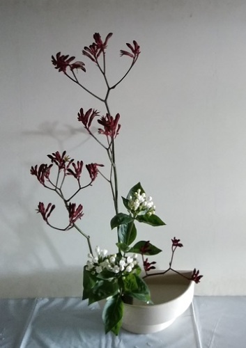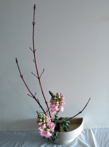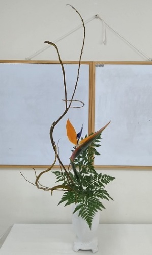 来週の土日が研究会なので、土曜日稽古のメンバーは研究会のお稽古です。本科の課題はカンガルーポー2、ブバリア3「花意匠・たてるかたち(応用)」 こども教室から研究会に参加する方も先日同じものをお稽古していましたね。 師範1の課題は珊瑚水木3、金魚草2「花意匠・たてるかたち(応用)」 何と花屋さんが間違ったか、サービスか金魚草が3本入っていて、私も良く確認せずにお稽古してしまいました中間枝を1本減らすように連絡しました 師範2の課題はリューカデンドロ(サファリサンセット)2、ストック3「色彩盛花・直立型」 3級の課題はストレリチア1、旭葉蘭2「花舞」今月から3級に進級した高校生が、なんといきなり「花舞」というやったことのない花型私も苦手なので、難しいです。 混ぜてアップしていますが、部活の1年生大会があって土曜日が都合悪かった中学生は日曜日にお稽古しました。きょうは、日舞の先生に発表会のご招待を頂いて見に行きましたが、途中で帰ってきて振替稽古しました。にほんブログ村 ブログランキングに参加しています。 きょうもポチっとしていただけたら幸いです