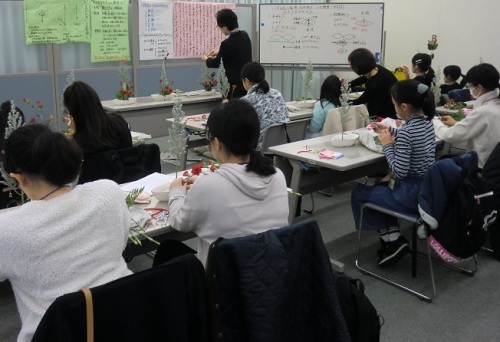 きょうは小学校のクラブ活動でした。「伝統芸能クラブ」で、いけばなだけではないので、夏まではお箏をやっていました。クラブの前に玄関の花をいけましたが、前回の菊の琳派がまだきれいだったのは驚きました。3週間経ったのに・・・ここの玄関は驚異の花持ちの場所なのです。 クラブのある時は同じ花材を使っていけるようにしています。ガーベラは、玄関用はポンポンガーベラにしましたが 何年もクラブもやっていますし、こども教室もやっていますが、初めての出来事があり驚きました。枝ものだったせいもあると思うのですが、長さを器で測って切る時に、なんと枝の上の方を切ろうとしていたお子さんが花モノだったらまさかそんなことはないと思いますが、花代600円で花屋さんに出していただいているので、全て花とはいかないのでね助手として一緒に行ってくれているお弟子さんが気付いて、慌てて先端から長さを測るように教えてくれましたが、これからはそういうことも想定しないと・・・と反省!!後ろの列のまだ手直しをしていないところも写っていますが、この後、全員を見てあげています。今年は4年生だけでなく、5.6年も初の伝統文化クラブのお子さんだけでした。こども教室に来てくれているお子さんは、4年生と6年生がいるので、流石に上手でした。見本花は校長室にいけてきました。顧問の先生も自分の担任している教室に飾るようです。にほんブログ村 ブログランキングに参加しています。 きょうもポチっとしていただけたら幸いです