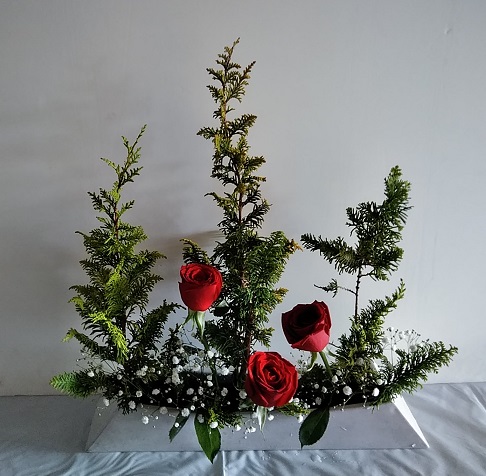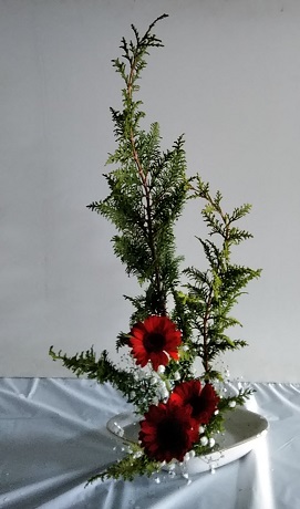 木曜日教室もクリスマスのお花をやりました。私が先日学校の玄関にいけたような「まわるかたち」をしたいと、学校に助手として行ってくださっているお弟子さんに言われていて、そのつもりで、土曜日教室で「ならぶかたち」にしていたコチアの組み合わせの花材をお願いしていましたが、今週は市場にコチアが入っていなかったそうで、土曜日のもう一つの組み合わせに似た感じの方にしました。 先週の真っ赤なガーベラが可愛かったのですが、それも今週はなくて、真っ赤な薔薇になりました。にほんブログ村 ブログランキングに参加しています。 きょうもポチっとしていただけたら幸いです