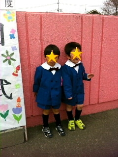 《生後3歳8ヶ月と3日&生後2ヶ月と26日》震災から2週間が経ちました。。。関東ではまだまだ落ち着いて生活できる感じじゃないんだけど子ども達の笑顔に毎日癒されながら元気に生活していますかおりちゃん、hikkusoさん心配を送ってくれてありがとうございました成長記録は書いておきたいなぁと思って久々に23日に殿は3歳8ヶ月になりましたますます口が達者に毎日何かしら怒られています怒られると『違う違う』と言い訳をするようにお手伝いをしたい掃除から料理からママがやってることを何でもお手伝いをしたいようでママの後を付いてくるこれはきっと震災の影響だと思う。。はやく忘れてくれるといいなぁ幼稚園の準備完了とうとう4月からは年少さん楽しく通って欲しいなぁ弟くんは28日に3ヶ月になりますこの1ヶ月でできるようになったことを箇条書きこぶしに気がついてよく見るこぶしをなめるようになる目が合うと、声を出して手足をばたばたして喜ぶ手と手をつなぐ両足をもちあげる足の力で上に進む声が大きくなるおしゃべりが上手抱っこして欲しいときに甘え泣きをする身長は不明、体重は7kgくらい夜も6時間は寝てくれますうんちくんは4日に1回ほど(便秘じゃないよ)あまり泣かずにとってもいい子3ヶ月になると予防接種ラッシュだわねそして来月からはお兄ちゃんの送り迎えもあるし頑張ろうね