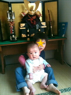 《生後3歳9ヶ月と6日&生後4ヶ月と1日》今日は『大安吉日』ってことで、兜をだしました今年で4度目だね去年の様子☆そして今年は弟くんも一緒殿に支えてもらったのはいいけど『重い~』って数秒後にごろ~んと横になっちゃいましたどう見ても弟くんの方が貫禄があるもんね(笑)2人ともスクスク成長しますように