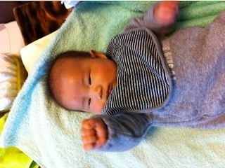今日で弟くんは生後4ヶ月になりましたど、ど~~~~んできるようになったことを箇条書き舌を出すものを掴めるになった寝返りの練習を始めた(最近あきらめた感じだけど)首が据わりつつ・・親指を指しゃぶりおしゃべり唇と舌を動かしていろいろ言える発音が増えた生活リズムができただいたいこんな感じ 6:30 起床(1番に起きていることも) 8:45 幼稚園へ送り 9:00 昼寝(長くても1時間ちょっと)11:00 ママと買い物13:00 幼稚園へ迎え14:00 昼寝17:00 お風呂18:00 就寝(夜は4~5時間ごとに)起きてる間おっぱいは3時間ごとお昼寝を長時間しない分、夜は寝たら朝まで覚醒することはないおっぱいを飲めばすぐにまた寝ちゃう楽チン1本だけ長~~~い髪の毛がある(笑)人見知りしないで、いつもご機嫌そして、昨日は『4ヶ月健診』の日でしたまずは栄養士さんの離乳食の話もうそういう時期なんだよねそして問診&診察身長:64.4cm体重:7.8kg胸囲:41cm頭囲:44.5cm頭囲が曲線から飛び出てましたでかすぎだねそして、うつぶせにされたんだけど全然首があがらない練習しなくても勝手にできるようになるのかと思ってたけど(笑)やっぱり練習しなくちゃいけないんだねごめんよ頭が重いのかすぐに横向いてあきらめ~~『首すわりNG』になっちゃましたとほほ。。。1ヶ月後にもう1度それまで練習頑張ろうね