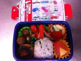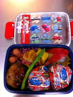 殿は昨日で3歳10ヶ月になりました幼稚園に楽しく通ってる新しいお友達もできたみたいで、お友達の名前を教えてくれます習った歌もよく教えてくれるし、行くのが嫌だっていうこともなかった風邪で4日も休んじゃったけどね最近トーマスにはまってる。。この前で『伝説のヒロ』(だっけ)を見て、気に入ったみたいで何回もみてる遊びもブロックでトーマス達みたいなのを作って映画のセリフ言ったりあと2ヶ月で4歳だわ~~大きくなったなぁ(笑)そして今日は幼稚園のお弁当の日でした幼稚園のイベントがある日(だいたい月1回)はお弁当なんだよねいつもは給食ですレジャーシート持参だったから園庭でお弁当だったんだろうけど残念ながら朝から冷たいホント寒かったわ初弁当はこんな感じでしたおにぎり、ミートボール、ハンバーグ、ウィンナー、マカロニサラダ、りんご作ってたのを殿が見てて入れるものと入れないものを指示れました(笑)迎えに行ったら『お弁当作ってくれてありがとう』だって先生に言われたのかもしれないけど、嬉しかったよウィンナーを1つ落としちゃったみたいで残ってたけどあとはきれいに食べてましたやっぱり食べてくれると嬉しいねまた来月に1回お弁当の日があるから、頑張ろうっと