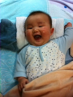 《生後5ヶ月と10日》今日は、精密検査がホントに必要かどうか見てもらうために駅前の大きいに行ってきました殿を幼稚園に送って行って、すぐ行ったので朝がばたばたまずは測定から大人しく測定させてくれたのでほめられちゃったね問診してもらったところ・・結果『経過観察』になりました殿も1歳くらいで『経過観察』になってるのでそれも報告結局殿は1歳半で範囲内に収まったので無問題だったんだよね先生はパパのことも知ってるので『ご主人も大きいよね~』って発達に異常はないし、きっと家系なんでしょうねって(笑)また1ヶ月後に見てもらうことになりました『はい即CTしましょう~』じゃなくってよかったよとりあえず一安心かな寝返りも得意になってやってますだいぶ遊べるようになってけど、しばらく経つと苦しくなって泣き声が(笑)殿もそうだったね何か懐かしく思っちゃった寝返り返りもはやくできるよになるといいね