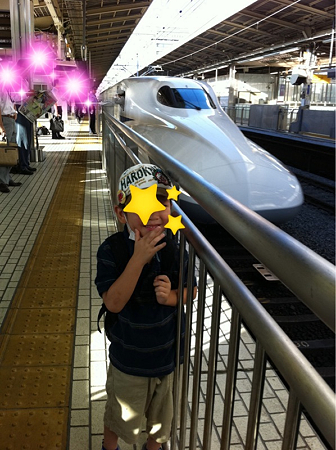 《生後4歳1ヶ月と30日&生後8ヶ月と25日》パパの遅~~い夏休みに合わせて家族旅行をしてきましたお兄ちゃんにに乗せてあげたくって弟くんは昨日から鼻水たれてたけどね初めて乗るにワクワク@新横浜。そして『京都駅』到着節約旅行なので3時間半掛かったよでも朝早く出たので着いたのは10時半まずは駅にを預けて、15分くらい歩いて『梅小路蒸気機関車館』へ蒸気機関車がたっくさんあって機関庫&転車台に興奮してたーD51の前で1枚そして駅に戻って腹ごしらえママは食べたかった『都路里の特選パフェ』かおりちゃんにもお勧めされてたのよねめちゃウマーでした抹茶そばも美味しかったその後、荷物を持ってタクシーで一旦ホテルに行ってちょっと休憩ホテルが三十三間堂の近くだったので行って来ましたここはママが中学の修学旅行で行った思い出の場所観音像は圧巻お兄ちゃんは怖がってたけどね三十三間堂を出るときに、お兄ちゃんの声がかすれてきたかなり涼しかったし、ちょっと嫌な予感がしつつ・・また移動きっつい坂べビーカーを頑張って押して、押して、押して着いた場所は『清水寺』夕日がきれいでしたちゃんとベビーカーでも行けるようになっていましたぐるっと回って、夕方で涼しくなってきたし・・1日歩いたのでお兄ちゃんはもう疲れちゃったみたいなのでホテルに帰ることに夕ご飯を食べて、お風呂に入って早めに就寝となりましたお兄ちゃんはちょっと咳をし始め・・弟くんは相変わらす鼻水たらりーん2日目につづく・・