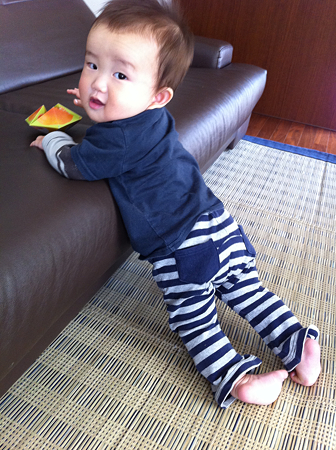 《生後9ヶ月と13日》10月7日につかまり立ちができるようになった弟くんそのときは一瞬すぎてシャッターチャンスを逃し今週に入ってつかまり立ちが本格化してきましたあこれは足がぐにゃり。。その後ちゃんと持ち直しました楽しいみたいで何回も練習していましたよ立ち上がると赤ちゃんから卒業も近い感じがするなぁ