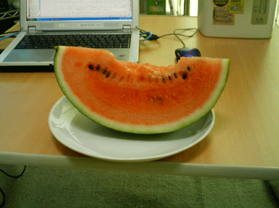 相変わらず暑い日が続きますね。私は土日はひたすら書類や仕様書の作成をしていました。そして今日の昼ごろ、結城取締役からサイトデザインのイメージ図がJPEGファイルで送られてきました。うん、いい感じじゃん♪大幅にリニューアルし多機能化するサイトのデザインはとても良くて来ていました。あとは実際に作るのみ(時間はかかりそうだけど)そんな感じで仕事を続けているが・・・・とにかく暑いなので、休憩を兼ねてスイカを買ってきました! 今年初めてスイカ食べたwでもやっぱり暑い、パソコンのCPUとHDDはめちゃくちゃ熱してる!!そこで・・・・・・ スイカ買ったときに貰ったドライアイスを器に移して水入れました♪つーか、これ冷却効果抜群!!パソコンがすぐに冷たくなった!!我らロードソサエティがデータセンターを保有したのちラックサーバの冷却装置をドライアイスにしてみようか(笑)その後、村田取締役がやってきて、村田取締役とともに今後の計画の確認、営業のための作戦会議、スポンサー候補の絞込みをしていました。忙しいけどかなり楽しい日々が続いています。