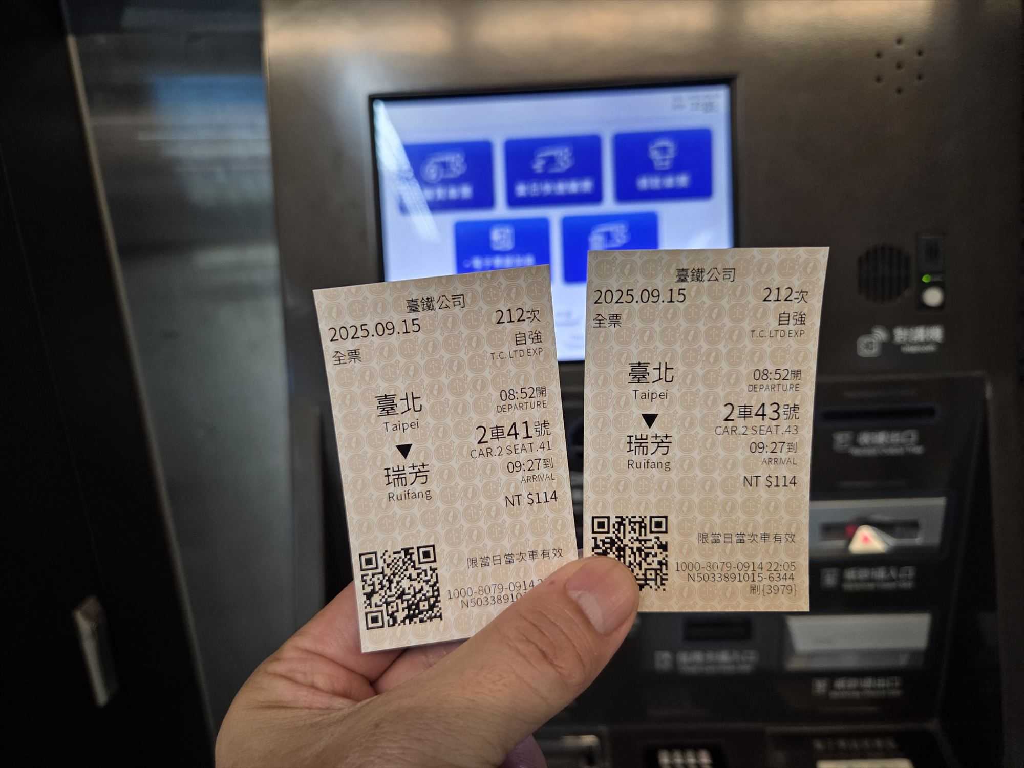 念願だった特急「自強号(じきょうごう)」に乗車します!切符が日本語対応なのは本当に便利ですね。