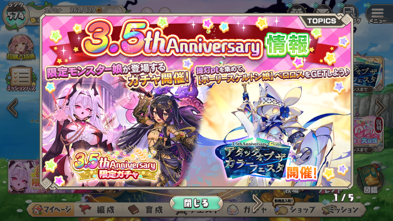 モン娘TD!3.5周年ですそれを記念したイベントが開催更新内容が多いです周年イベントに周年ガチャ新たな獣神に、魔獣の大迷宮の新マップ新コスチュームもあるし、メインストーリーのアイテムドロップ率アップと来たもんだ大盤振る舞いとはこの事ですねイベント「アタックオブザカラーフェスタ」今回のイベントは、ちと厄介でしたご主人君やぐらと、密猟者やぐらがあって先に相手のやぐらを壊した方が勝ちと言うルールです某イカのゲームですねモン娘を配置するマスに色が付いている事が重要で無色のマスだと攻撃が0になり、ダメージを与えられないんですよご主人君やぐらのスキルで範囲内のマスをランダムな色にしてくれますが逆に密猟者やぐらはダメージを与えると無色マスに塗り替えてきますマスの色を塗り替え合いっこしながら戦う…やっぱり、あのゲームですよね~ご主人君やぐらと、密猟者やぐらの位置がそれなりに離れているので、遠距離じゃないと届かないんですけど遠距離攻撃は、近くの敵を狙っちゃうから密猟者やぐらに攻撃が向かないですよね~そうこうしてるうちに時間切れになっちゃいました結構、難しい私は、上手い事ミラドラのレーザーがやぐらに当たって倒せましたね今思うと、ワエマワとかの広範囲攻撃できる娘の方が良いのかな?それか、配置した直後に自分の足元のマスを色付けするモン娘とかちょっと、この娘っていうのは思い浮かびませんけどそんなことが出来る娘もいましたねイベントはアイテム交換方式そして、新モン娘【ホーリースケルトン娘】ペロロスを入手!カッコイイ!骨騎士だー!それに新コスチューム「ペロロスの聖なる受肉服」こいつを着せてあげると…かわいい!新モン娘と新コスチュームが同時実装とはさすが周年イベント!最後に、新たな獣神「光珠のルルゥ」を取りましてどーん!と見ましょうモン娘のルルゥが獣神化しました人気投票1位の特典でしたっけ?なんだか神々しいですね交換レートもビビメダル1,000枚と普段よりお安いですはい。モン娘3.5周年アニバーサリーでしたいや~、やる事が多い!大変だ!まだ紹介してない魔獣の大迷宮の追加マップと復刻の大討伐が残ってるんですよそれらは後日だなぁあと、周年ガチャ引きたいけど、無理なんですTD祭りの時に石は使い果たしたので、すってんてん諦めますガチャチケットでワンチャン出ればいいなぁ少し前にクリスマスバロウをガチャチケで当てたんでね可能性は低いがあるぞ!ではまたバースデーケーキ 誕生日ケーキ 4号 5号 6号 苺姫 動物4匹 生クリーム ケーキ/ 15cm 敬老の日 あす楽 誕生日 フルーツケーキ 敬老の日 バースデー 結婚記念日 ケーキ プレゼント スイーツ ギフト お菓子 子供 即日発送 送料込 送料込み ホール 名入れ 名入 還暦祝い 1歳 1才