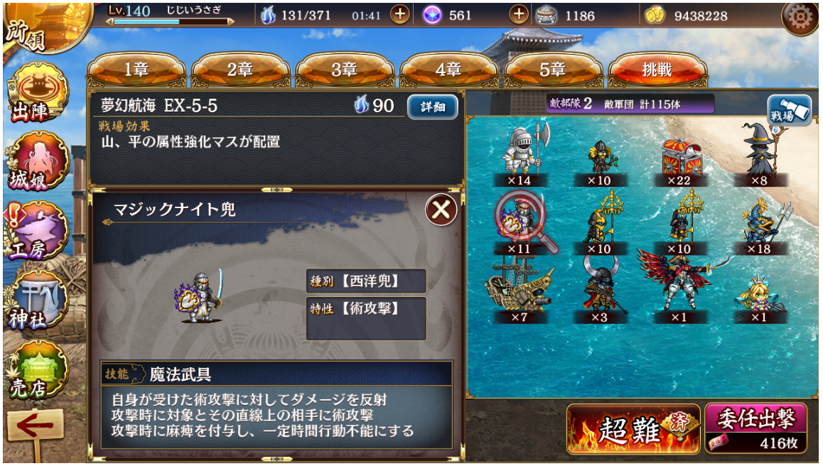 夢幻航海 4-4、4-5の追加&EX4-2クリア