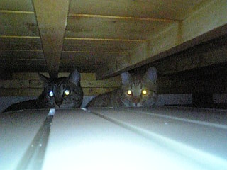 知らない男の人が…僕達のお部屋に入った~と。大パニックの、こじトラ(笑)ベッドの下から出てきません。気配もバッチリ消して、物音一つ立てませんそれにしても。こんな時も2匹べったり、仲良し兄弟微笑ましいなぁ、なんて。猫の気持ち、親知らず。ですかね(笑)