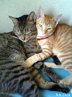小次郎と、高虎。二人とも拾いっこなので、誕生日が分かりません なので、2にゃんとも春生まれって事で、端午の節句に勝手に設定彼らからすれば、どうでも良い事でしょうケド(笑)私からすれば甘やかす絶好の言い訳言い訳なんてしなくても、いっつも甘々だけど。更に輪をかけて、抱っこに、おやつに、遊びに、ナデナデに 私のワガママで、うちに連れ帰ってるんですもの。「あぁ、俺、今ちょー幸せ」って。感じてほしいじゃないですか。。。あなたが幸せそうな顔してるの見るのが、私の幸せです。。。あなたが心から甘えてくれると、私は癒されます。。。 ・・・まぁ。結局のトコ、私の幸せと癒しの為だけに祝われているっていう・・・。なんだかね(笑) それから。「彼」の誕生日、でもあります。「2年、日本から消える、帰れたら連絡する」って。電話があったのが、おととし。いつも、タイミングが良いというか悪いというか・・・ 「帰ってもし・・・」って。今は、一人だよ。 あなたの為じゃないけどね(笑)別れ際だし、センチメンタルな事、言ってみたかっただけでしょ。 ま。それでも、、、いいよ。生きて帰って。。。今時「生きて帰って」なんて笑っちゃうよね。 私ね。 あなたにも、「俺、今、幸せ」って感じてほしいよ。私とじゃなくていいよ。それさえ聞けたら、忘れられるのに。 ・・・・・・・・・・・・・・・・・・・・・・・・・・・・・・・・・・・・・・・・・ な~んってね~浸りすぎ(笑)恥ずかしっでも。ホントに、そう思うんだけどな。