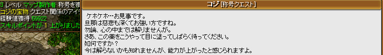 こんにちは稚菜です前回、バフォクエの最初のMOBの手前で落ちましてログインしたら知り合いがおりましたLV上げして頂きました(1LVだけ)その後古代クエを無理矢理手伝って頂きMAPクエを進める事にしました本日はここまで♪睡魔には勝てません(´-ω-`)・・・・・・稚菜でした~♪