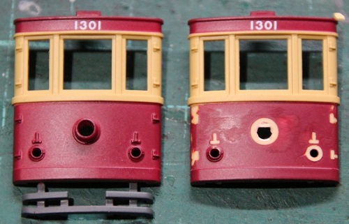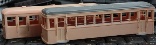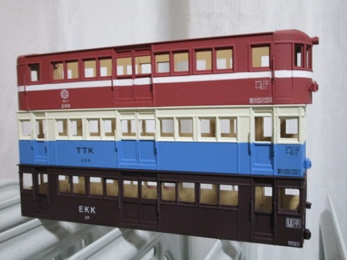 皆様こんばんは。よ~めいです。昨日と今日で会社のテニス大会だったのですが、昨今大流行のコロナウイルスの関係で中止になってしまいました。残念。行きはスーパービュー踊り子の席を予約していたのですが。さて、そんな訳で、土日が空いてしまったので、模型が進みました。久しぶりにコンプレッサーを取り出して塗装です。これで3つのお顔が良く見比べられます。サフを吹いて、内装のクリームを塗ったところでタイムオーバーです。猫屋線の路面電車が届きました。そして、これがデハ1301とサハ303の最後の姿となったのです。これも、以前の栃尾線と同様、栃尾線タイプに改造していきます。そして既にバラバラになって加工が始まっています。それはまた別の記事で。では~