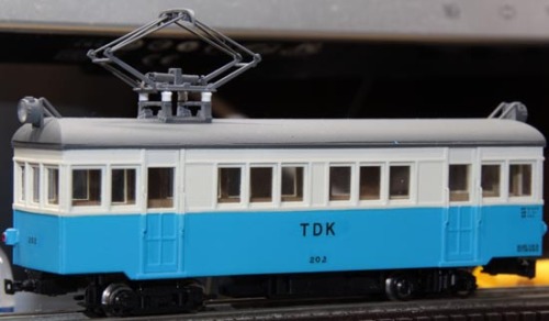 皆様こんばんは。よ~めいです。今回は久しぶりに貨車ネタ出します。先日の軽便祭に向けて作っていた猫屋線の電気機関車、結構前に完成したのですが、軽便祭で出すことにしてこちらは後回しにしていました。買った時の記事はこちら先にタンク車を。越後交通栃尾線のホタ1形式の12号車です。一旦すべての色(なんか薄灰色みたいだったのよね)を剥がして艶消し黒に塗り替えただけ。ですが標記を大事にしようと、右側の検査標記はもちろんの事(写真では読めないでしょうが実際は読める)、国鉄貨車の表記通りの社紋と社名を描きました。社紋はEKKにしようと下のですが、ここは国鉄標記を踏襲して社紋にしました。台車の車輪はアルモデルの8Φのに取り換える。そうするとNゲージ感が途端になくなりますよね。輪心は黒マジックで誤魔化し。連結器は片側は付属のバネ付のケースにカトーNを。もう片方はIORI工房の朝顔を鉄コレ連結器用を購入しました。IORI工房の連結器、良いね♪ 他の栃尾線のこのタイプの連結器はこれにしちゃおうかしら。ホタ1タンク貨車は、栃尾で採掘された重油を長岡に輸送するために製造された中の12両目(実は「東山油田」と言うのが実際にあった)で、中にはステンレスのタンク体のホタが居るとか居て、新しい機関車で栃尾の駅と長岡を往復していたとかしていないとか。所で、猫屋線では「タホ1」となってるのですが、自分はあえて「ホタ1」としました。だってさ、客車は「ホハ」とか「ボハ」で、無蓋車は「ホト」とか基本構造の車両の用途の順でしょ。国鉄客車だって、ハ、コハ(小型のコ)、ホハ(ボギーのハ)、ナハ(並型のナ)以下略、と続いたので、ここはボギーのタンク車で「ホタ」としました。こういう様なの考える楽しいよね♪さて、一般的には皆さん機関車ですよね。見てわかるように、定山渓 → 松本電鉄 → 長岡線と移り住んだED5100です。てか、モロそれでしょ。車体の改造は、上に上がる手すりと昇降手すりを真鍮線に置き換えただけです。あとは、解放テコとテコ受けを真鍮線で作成し、これまた栃尾線標準の鎖フックを貴和製作所で見つけて来て取り付け。連結器はIMONカプラーを台座に噛ませて高さを調整しました。色は黄色黄色塗って、マスキングして黒塗って、キャラクターブルー塗っただけ。それ以外は切った貼ったしないお手軽加工です。向かって右側の標識灯は潰しても良かったかな。動力は純正のもので、台車枠を灰色に塗りました。のぞみ工房のライトを手に入れたので、点灯の加工をしようと考え中。さぁて、これで本当に軽便祭関係が終わった。来年度の軽便祭に向けて、さぁ、何作ろう。1両で別バージョン作れる、アレ、かな。では
