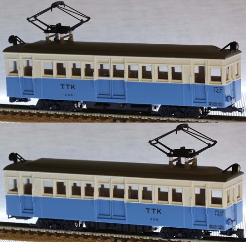 皆様こんばんは。よ~めいです。暑いですね。その暑い中のオリンピック開催。暑くなるのは分かり切ったことなのでどうせ1年延長するならもう少し時期をずらせば良いのにねぇ。知らんけど。さて、3Dプリント車両のうち、やっと1両完成しました。栃尾鉄道モハ206の初期型です。元は石川鉄道(現北陸鉄道)から大正14年に購入したホハ13。昭和19年にキハ112に改造しかけ(認可が降りなかったとの事)、昭和26年にモハ206になっています。この空白の7年間はどう運用していたのでしょうね。後にホハ23をクハ101に改造したがやはり認可が降りず、クハの姿でホハだった車両はありましたけどね。特徴は前面5枚窓の流線形。国鉄キハ07が昭和10年からなのでキハ112がこの流線形だったら影響を受けたに間違いない(ただしキハ112の姿の文献は無し)。台車はパンタグラフ側が偏心台車。アーチバー台車の偏心台車は珍しいようで、日本ではここだけの様です。鉄コレ動力を使用している為に偏心台車にできないので、軸バネを横にずらしてそう見えるように作成しました。その後、昭和29年に前面を貫通型になっています。その姿は、窓張りを終えれば完成します。
