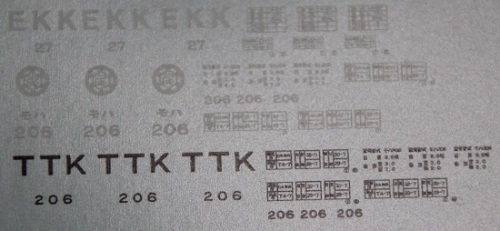皆様こんばんは。よ~めいです。デカールを作りました。今回の3両分です。しかし、モハ206を貼っているところで間違いを。サイズをミスりました……orz調整して印刷し直しですわ。