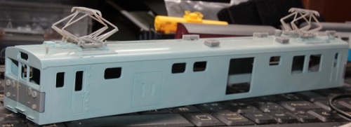 皆様今晩は。よ~めいです。昨日は曇りでしたが、クリア吹きを決行しました。(ピンボケ写真ですみません……汗)白化せずに、艶ありクリア→つや消しクリアで塗れました。屋根や台車等もつや消しクリアで塗ったので、今度は窓セル張りです。と思っていたのですが、パンタグラフと連結器(未手配)を思い出しました。oh……orz