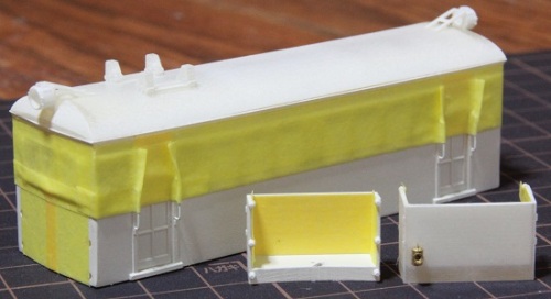 皆様こんばんは。よ~めいです。積み(罪?)キットを片付けていきます。昼間は塗装ができるので、ずっと止まっていたコイツを。高岡の気動車です。前回の日付が『2016.08.25』なので、3年と8カ月泊まっていたわけです。ごめんよ。いつだったか、黒の塗装をしてマスキングをせずにそのままでしたので、今日は午前中に黒を隠すマスキングをし、午後に黄色塗装です。色は悩みました。以前購入したマイクロエースのキハ52に合わせようと思ってみたものの、あの色も明るすぎな気がして手持ちの黄色4種類くらい試しに紙に落としてみました。すると、以前作ったホビダスのキハ40高岡色で使った色を思い出しました。GMカラーの西武線イエローです。今日はそれを塗りたくりました。次回は青を塗装します。それのマスキング作業です。今度のお休みで青が塗れるかな?では~