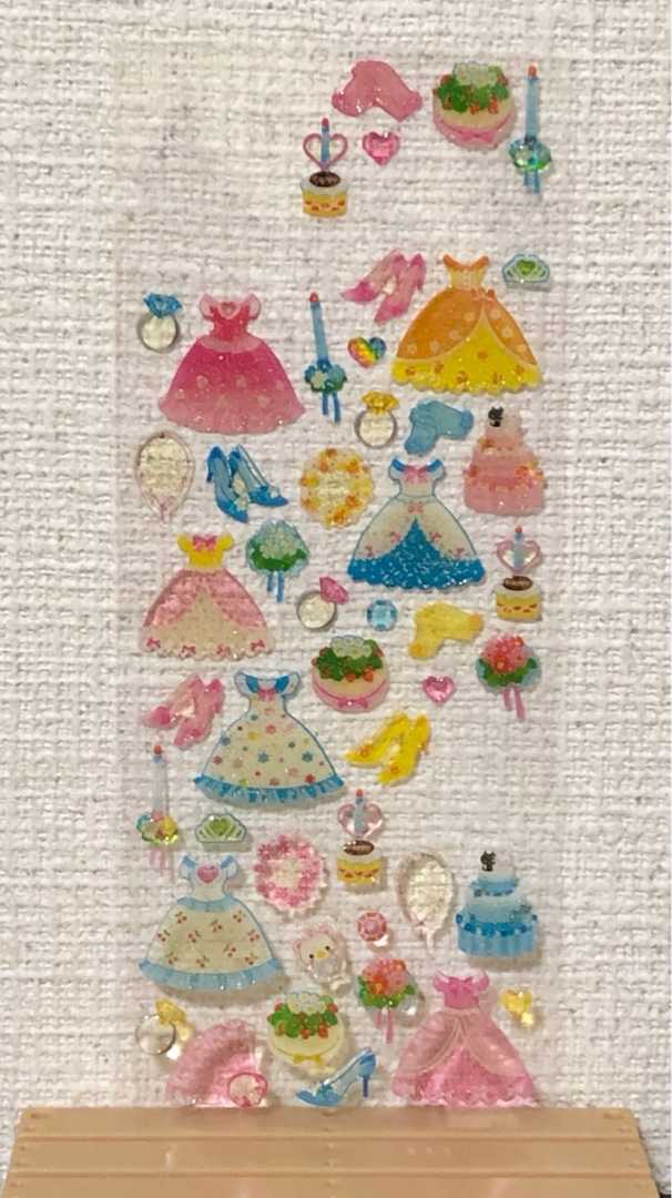 シールコレクションNo.110 ウェディングドレスシール カラフルなウェディングドレスのシールです♪ ぷっくり厚みのあるタイプ。 一部は使ってしまっているので穴あきです。 シール上部。 ピンクドレス、イエロードレス、 ブルーとホワイトのドレス、 ピンクとホワイトのドレス。 ウェディングケーキやお花の付いたキャンドルサービスのトーチもあります。 カラフルな石の付いたリングも。 シール下部。 柄入りのホワイトのドレスが2着。 淡いピンクのドレスが素敵です♪ おそろいのピンクのヴェールもあります。 ブルーのウェディングケーキ、 カラフルな靴やブーケもかわいい。 だいぶ昔に購入したもので、今は販売されていないと思います。 1枚所有。 たけいみき シール シート ふち箔 クリア シール リトルローズ クローズピン デコシール かわいい ガーリーイラスト グッズ 通販 メール便可 シネマコレクション たけいみき シール シート ふち箔 クリア シール プティエトワール クローズピン デコシール かわいい ガーリーイラスト グッズ 通販 メール便可 シネマコレクション