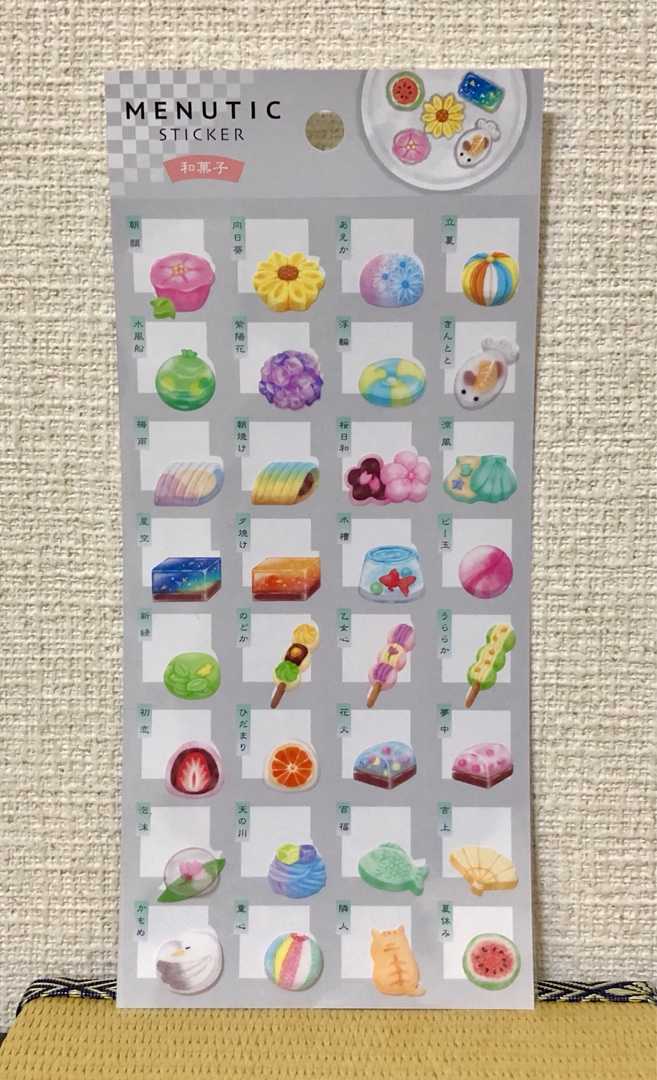 シールコレクションNo.113 和菓子シール 芸術品のような美しい和菓子のシールです♪ 一つ一つ、ちゃんと名前付きの和菓子たち。 32ピースあります。 ピンクや黄色の鮮やかな和菓子、 緑の水風船と紫の紫陽花が素敵♪ 貝の形の和菓子、金魚入りの水槽の和菓子などがユニーク♪ そして星空と夕焼けの和菓子の美しさ! どんな味がするのか?カラフルお団子。 苺やみかんが丸ごと入った大福。 花火や天の川など、こちらにも美しい和菓子が♪ 魚型、扇子型のは最中かな。 夏休みはスイカ型、 そして猫ちゃんの背中…隣人。 全体的に名前の付け方がGOODですね♪ 1枚所有、未使用です。 もったいなくて、なかなか使えなくなりそうなシールです♪ MINDWAVE マインドウェイブ シール ・ 菓子処 福丸 和菓子 シール帳 福袋 丸 おしゃれ アルバム デコレーション ハート 大量 ステッカー スマホ ごほうび 花 かわいい スケジュール帳 手帳のタイムキーパー