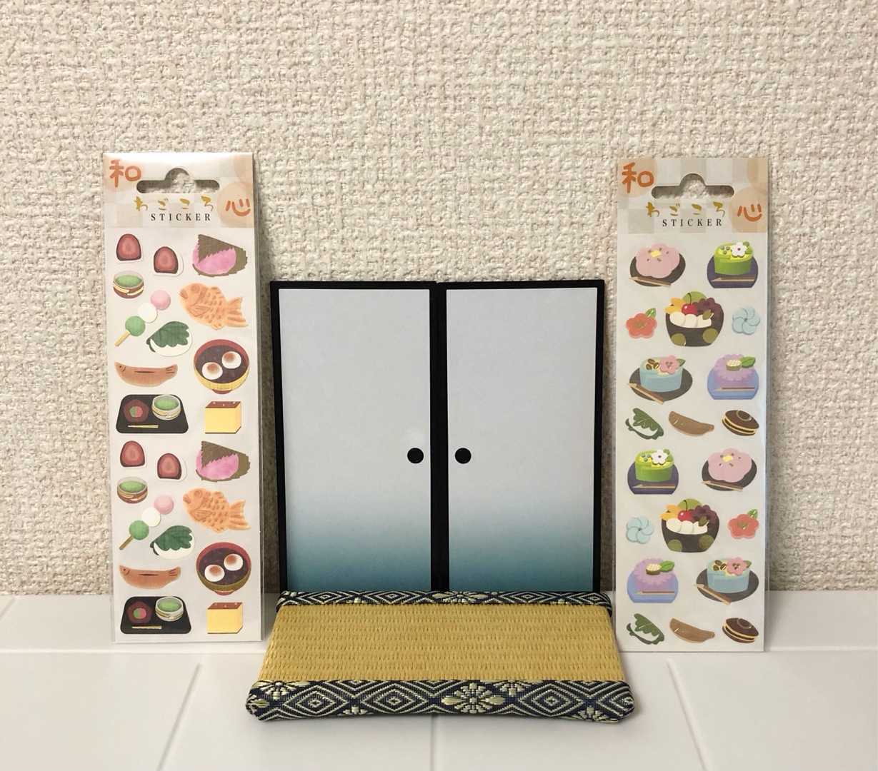 シールコレクションNo.117・118わごころ和菓子シール和菓子のシールを2種類紹介します♪1枚目はこちら。定番の和菓子が並びます。桜餅、苺大福、たい焼き、三色団子、柏餅、カステラ。ぜんざいが美味しそう。お抹茶セットがお気に入り♪2枚目はこちら。1枚目とまた違う種類の和菓子が並びます。緑や紫、ピンクや水色の生菓子、どら焼き、柏餅。こちらは、白玉あんみつがお気に入り♪丸みを帯びた可愛らしい絵柄が特徴的なシリーズです。同じシリーズのお寿司バージョンも以前紹介していました。各1枚所有。未使用です。S&C Corporation S&Cコーポレーション シール ・ 和紙 和菓子 和スイーツ シール帳 福袋 丸 おしゃれ アルバム デコレーション ハート 大量 ステッカー スマホ ごほうび 花 かわいい スケジュール帳 手帳のタイムキーパー