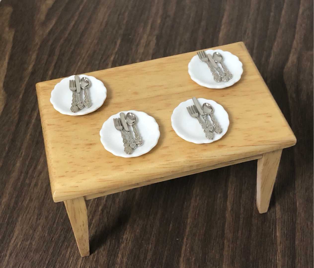 またまた、中国から送られてくるドールハウス用商品を購入しました。 今回購入したのはこちらのお皿とカトラリーのセットです♪ いつも届くまで少し時間のかかる中国製ドールハウス商品ですが、今回は今までで最長で注文から1ヶ月ちょっと掛かりました(^_^;) この小さい商品を単体で注文したのが悪かったのかもしれません。 梱包はこのような状態で封筒に入って届きました。 真っ白なお皿が4枚。 カトラリーはさらに小さい袋に入れられていました。 お皿1枚とナイフ、フォーク、スプーンが1セットになっています。 素材はプラスチックではなく、カトラリーは金属製、お皿は陶器製でしっかりしてます。 全部でお皿は4枚、カトラリーは12本。 購入サイトはAmazonです。 値段は送料込みで371円でした。 最初に書いたように今回はこちらの商品を単体で注文しましたが、注文から届くまで1ヶ月以上掛かり、もう届かないかもしれないと諦めかけたほどでした^^; 値段も値段だし届かなくても諦めもつくので、特に販売先に連絡するつもりもありませんでしたが、何とか無事に届いてくれました。 小さい商品を注文する時は、他の大きい商品と一緒に注文したほうが早く届くかもしれませんね。 シンプルなお皿とカトラリーが欲しくて購入した商品でした。 色々使いやすそうなセットです♪ ミニチュア雑貨 白小皿4枚セット [B(O-94)] [m-s] 【ネコポス配送対応】【C】 ミニチュア 食器 カトラリー セット BLAZE インテリア 雑貨 人形 ドール インテリア