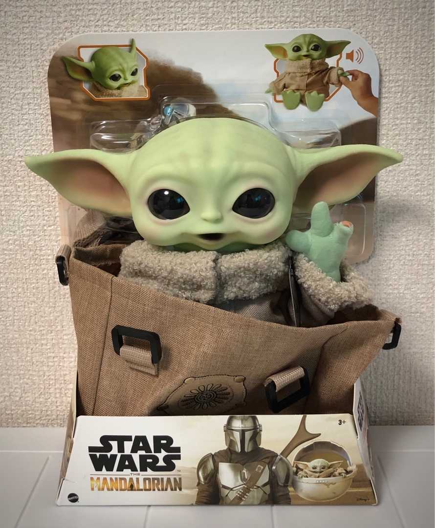 ディズニープラス配信ドラマ『マンダロリアン』に登場する「ザ・チャイルド」こと、グローグーのマテルです。 今回のマテルの特徴は、表情がお口を開けたニッコリ笑顔、主人公マンドーさんのようにグローグーを持ち運べるショルダーバッグ付き、そしておしゃべりするグローグーなんです! ニッコリ笑ったお顔がとにかくかわいいです❤️ パッケージ裏面。英語表記です。 「チャイルドと一緒に銀河の旅に乗り出してね」的なことが書いてあるみたいです。 下にはスピーダーバイクに乗ったマンドーとグローグーの写真が。 グローグーちゃんをパッケージから出してあげましょう。 外そうとしたら、あれ⁇ 動かない、と思ったら首が…結束バンドのようなもので、しっかり固定されてました。 カットして、出してあげました。 可愛く手を振ってます^ ^ ベージュのショルダーバッグにストンと入った状態です。 後ろ姿。 かわいい後頭部とお耳。 グローグーちゃんを外すと、パッケージ表面にショルダーバッグのヒモ部分が収納されているのを見つけました。 もったいないので、まだ開封しないでおきます^^; 次はバッグから出してあげます。 バッグとグローグーちゃんも、しっかりくっ付いてました。 その2へ続きます。 ■ベビーヨーダ Mattel Collectible - Star Wars, The Mandalorian: The Child 2.0 11"(約20cm) Basic Plush ("Baby Yoda") <マンダロリアン/スター・ウォーズ>