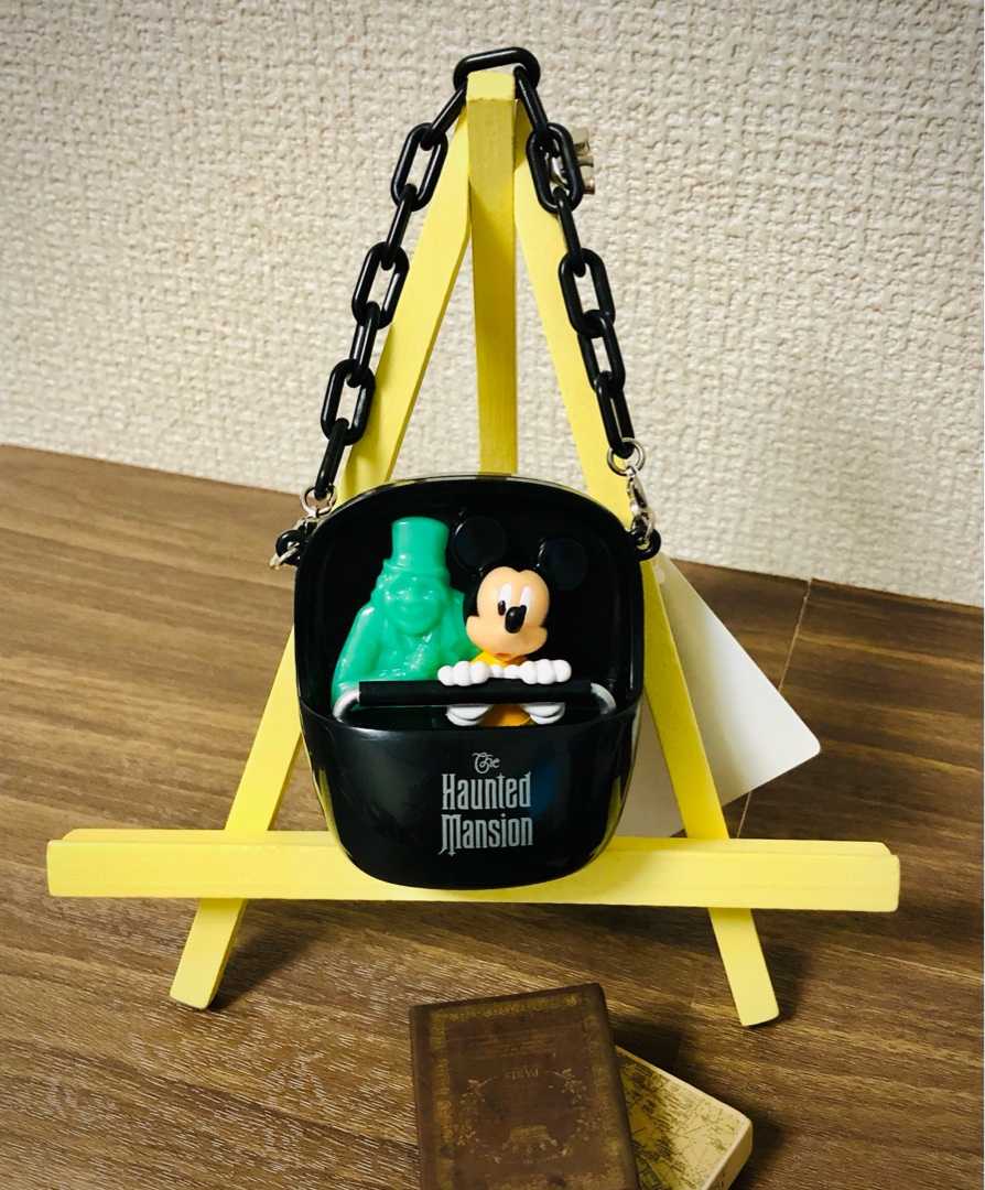 ディズニーリゾートGOODSコレクション No.12 ホーンテッドマンション スナックケース♪ ディズニーランドのアトラクション「ホーンテッドマンション」のドゥームバギー型スナックケースです♪ ケース正面。 ミッキーのバギーにゴーストも乗り込んできちゃったんですね。 しっかりとバーを握る手、ちょっと怖がってるミッキーの表情がGOOD♪ 裏面です。 本物のドゥームバギーと同じくコロンと丸みを帯びた形がかわいい。 東京ディズニーランドのロゴが入っています。 チェーンも黒。 真ん中にスナックを出し入れする丸い口があります。 口は上に開きます。 パークでは中に入れるグミやマーブルチョコなどとセットで販売されていますが、こちらはディズニー公式オンラインショッピングで購入したので、中身は付いてきませんでした。 ホーンテッドマンションが大好きなので、緑のゴーストまで一緒になったリアルなドゥームバギー型のスナックケースになってくれて嬉しかったです♪ お気に入りグッズです^ ^
