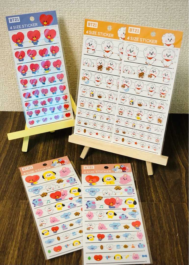 シールコレクションNo.148.149.150 BT21シール BT21は、K-POPアイドルBTSのメンバーがデザインしたキャラクターです。 販売されているシールの中から3種類購入しました。 まずはこちら。 メンバーのJINさんがデザインした「RJ」というキャラクターです。 アルパカをイメージしたそう。 白くてモコモコのかわいいキャラクターです^ ^ 次はメンバーのVさんがデザインした「TATA」というキャラクターです。 頭部が真っ赤なハート型の個性的なキャラクターです^ ^ 最後はこちら。 メンバー7人全員のキャラクターが1枚に収まったシールです。 カラフルでそれぞれに個性あふれるキャラクターシールですね^ ^ 「RJ」と全キャラクターが揃ったシールは2枚ずつ、「TATA」シールは1枚購入しました。 未使用です。
