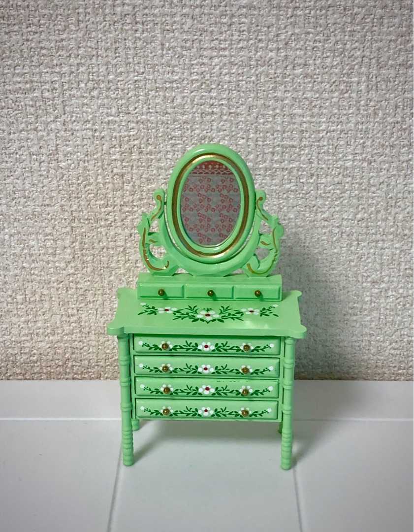 中国製ドールハウス家具「ベッドルームセット」前回の続きです。まずは鏡台です。白い花柄が全体に入っています。楕円形の鏡は角度を変えられます。裏側です。鏡部分だけ、裏側は茶色です。それ以外はきれいに一色に塗られています。4段の引き出し部分は取り出せます。鏡の下の小さい3つの引き出しは、取り外すことはできません。引き出しの中の塗装はやはり少しムラがあります。次は姿見です。こちらも鏡部分は角度を変えられます。裏側です。鏡台と同じく鏡部分は裏側が茶色です。下に引き出しが一つ付いていて、取り出せます。次はゆらゆらチェアーです♪こちらは花柄は入っていませんが、金色の型押しが大きく入っていてアクセントになっています。座席部分は網状のちょっと変わったデザインです。裏側です。やはり金色が効いています。並べてみました。明るく可愛らしいベッドルームが出来上がります^ ^今回のセットの金額は、購入時3,660円でした。(中国製ドールハウス家具は購入サイト、購入時期により価格が変動することが多いです。)いつもながら、家具のセット数の多さ、満足のいくクオリティとデザイン、中国からの送料込みで充分納得できる金額。今回も購入して正解でした(^ ^) 5個/セット1/12ドールハウスマイクロベッドルームセットふりおもちゃアクセサリーパーツ用【ドールハウス特売】1:12ドールハウスミニチュア白ロマンチック木製ベッドルーム家具6本セット