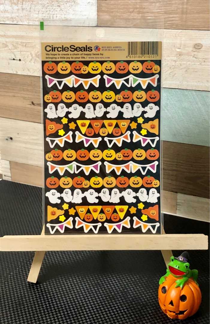 シールコレクションNo.152 サークルシール ハロウィン ハロウィン の季節に使いたいシール♪ 顔型にくり抜かれたかぼちゃ。 紫、オレンジ、黄色などハロウィン カラーのフラッグ。 ゴーストがかわいらしくてお気に入りです^ ^ 数年前に購入したもので同じものはもう販売されていないかもしれません。 1枚所有。未使用です。 ザ・ハロウィン といった使いやすいシールなので、追加で購入しておけば良かった^^; 次々と新たなシールが発売されては消えていくシール業界。あの時もっと購入しておけば良かったと、後から後悔することも良くあります。 シールとの出会いも一期一会ですね♪