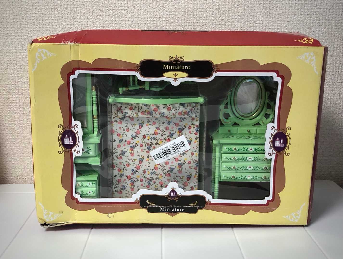 新たに購入した中国製ドールハウス家具を紹介します^ ^ 今回は注文から約2週間で中国より到着。 やはりダンボールではなく、ビニール袋入りで届きました。 今回は珍しく、かわいい箱に入っています♪ せっかくのかわいい箱ですが、残念ながら状態はベコベコ。 これはいつものごとく想定内です^^; もうフタが浮いちゃってるのが、わかりますね^^; 後ろはこんな状態です。 全体的に傷も多く、いつもながらさすがのクオリティ( ̄▽ ̄;) 箱から出しました。 今回のセットは、明るくかわいいグリーンカラーと全体に施された花柄が素敵だったので購入しました^ ^ このように、ピッタリ収まる容器にきれいに入っていました。 まずはベッドです。 木枠部分にも白と赤の花柄が散りばめられている、可愛らしく上品なデザイン♪ マットレスも白地に鮮やかな花柄。 マットレスと木枠の隙間に接着剤がはみ出しているのが見えますが、これくらいはやはり想定内です。 裏返したところ。 多少塗装のムラや剥げがありますが、裏側なので問題はありません。 次は可愛らしいミニチェスト♪ やはり全体に赤と白の花柄が施されています。 裏側です。 特にムラもなく、きれいな仕上がり。 引き出しは全て取り外せます。 引き出しの中の塗装はムラがありますが、これも閉めていればわからないので気にはなりません。 次回に続きます。 5個/セット1/12ドールハウスマイクロベッドルームセットふりおもちゃアクセサリーパーツ用