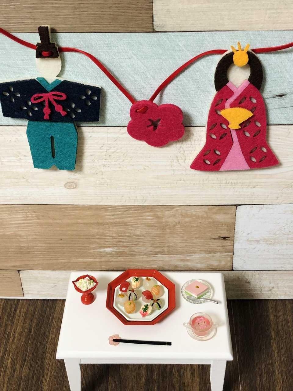 本日のミニチュアサンプルNo.10♪2004年発売 リーメント「和食日和」より『手まり寿司』赤やピンクが映える、華やかで可愛らしい手まり寿司のミニチュアサンプルです♪ひな祭りにピッタリ🎎1点ずつ紹介します。まずはこちら、ひなあられ。緑、黄色、ピンク。カラフルなひなあられ。ひなあられの部分とその下の紙、赤い台座はすべてくっついていて分離することはできません。赤い台座が鮮やかでGOODです♪次はこちら、桜色の飲み物。もうこのピンク色の透き通る感じがたまりません!カップとソーサーは分かれるようになっています。白い植物のような模様が入っています。上から見たところ。桜の花びらが浮いているのが、とっても素敵🌸ところでこれは何の飲み物なのかな?桜ティー⁇カップと中身は一体なので、中身を取り出すことはできません。カップのサイドにもソーサーと同じ白い模様が入っています。こちらは、ひし餅。かわいいお皿とスプーンつき。こちらのお皿も白い線状の模様が入っています。ひし餅はピンク、白、黄緑の三段カラー。色合いもきれい、上に金粉ものっていておいしそう^ ^小さな銀のスプーン。小さいけれど、模様も入っていて細かいです。メインの手まり寿司。もう色付けが凝っていてカラフルだし、細かいし、かわいいし、大好きです^ ^お皿は赤いお皿と白いお皿が重なっていて、分離できます。六角形の形がいいですね。手まり寿司部分は、二つに分かれます。ネタは五種類が二個ずつ。サーモンとマグロはわかるけど、他は何かな。箸と箸置きです。黒い箸です。くっついていて分離はできません。持ち手あたりにうっすら金の線が入っています。桜の形の箸置きです。少し透け感のあるピンク色。小さいけれどちゃんと桜の形に象られていて、とても素敵です♪こんな小さな箸置きでも、手を抜かない初期リーメントのクオリティに脱帽^ ^2セット所有しています。とにかく一つ一つが細かい造りで素敵なサンプル♪お人形遊びも楽しくなるセットです^ ^リーメント 実家でぬくぬくおこた【初回特典付き】お一人様2点まで