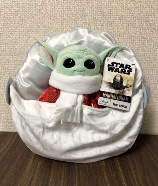 ディズニープラス配信ドラマ『マンダロリアン』に登場するキャラクター「グローグー」のぬいぐるみ♪昨年の12月にショップディズニーにて購入しました。白いポッドに入った、クリスマス仕様のぬいぐるみです^ ^柔らかく白いポッド。裏側にはグローグーの相棒マンドーさんのヘルメットや雪の結晶のような柄が薄いブルー色でデザインされていて上品♪ぬいぐるみを出したところ。ポッドの中は光沢があるサラサラ生地です。やはり薄いブルーの色がついています。ポッドの形なので、サイドには部品を型どった布がちゃんと付いているこだわりよう。ぬいぐるみ本体です。ちょっと微笑んだようなお顔がかわいい💕クリスマスらしい真っ赤なお衣裳。首には白いマフラーも巻いています^ ^後姿。柄にはやはりドラマにちなんだマンドーさんのヘルメットやミソソーのネックレスがデザインされています。下から。かわいい脚がありますよー。以前、同じくショップディズニーにて購入したぬいぐるみと並べてみました。体の色は同じ感じですが、お顔は違いますね。クリスマス仕様のほうは、かなりかわいらしくデフォルメされています。もちろん、どちらもかわいいです♪