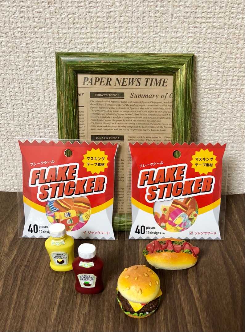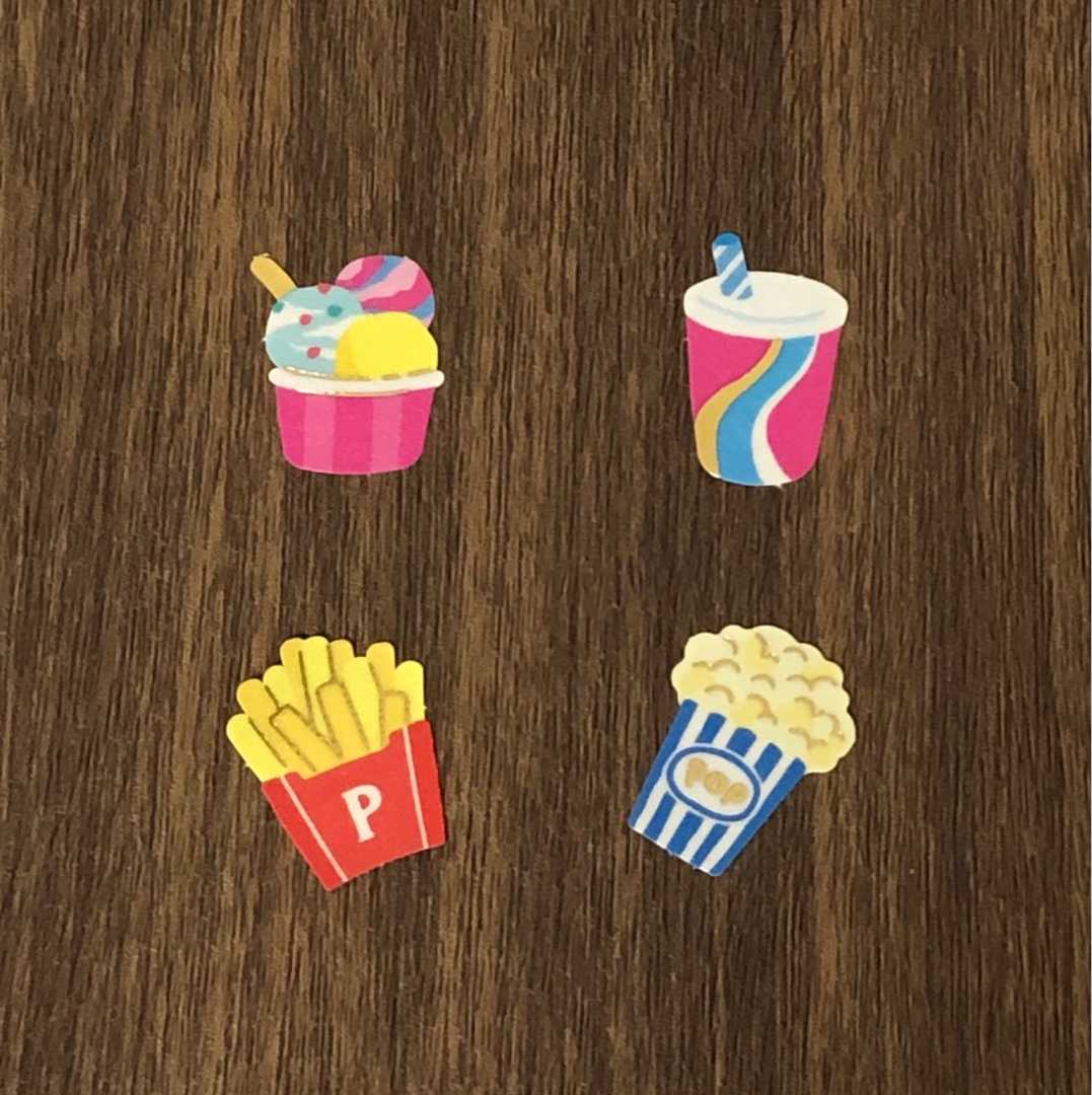 100均セリアで購入した、ジャンクフードのフレークシールです♪