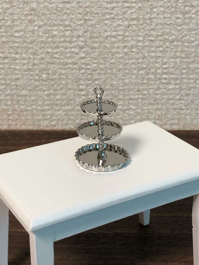 ミニチュアマカロンとマカロンを載せるシルバー3段ケーキスタンドのセット商品です。