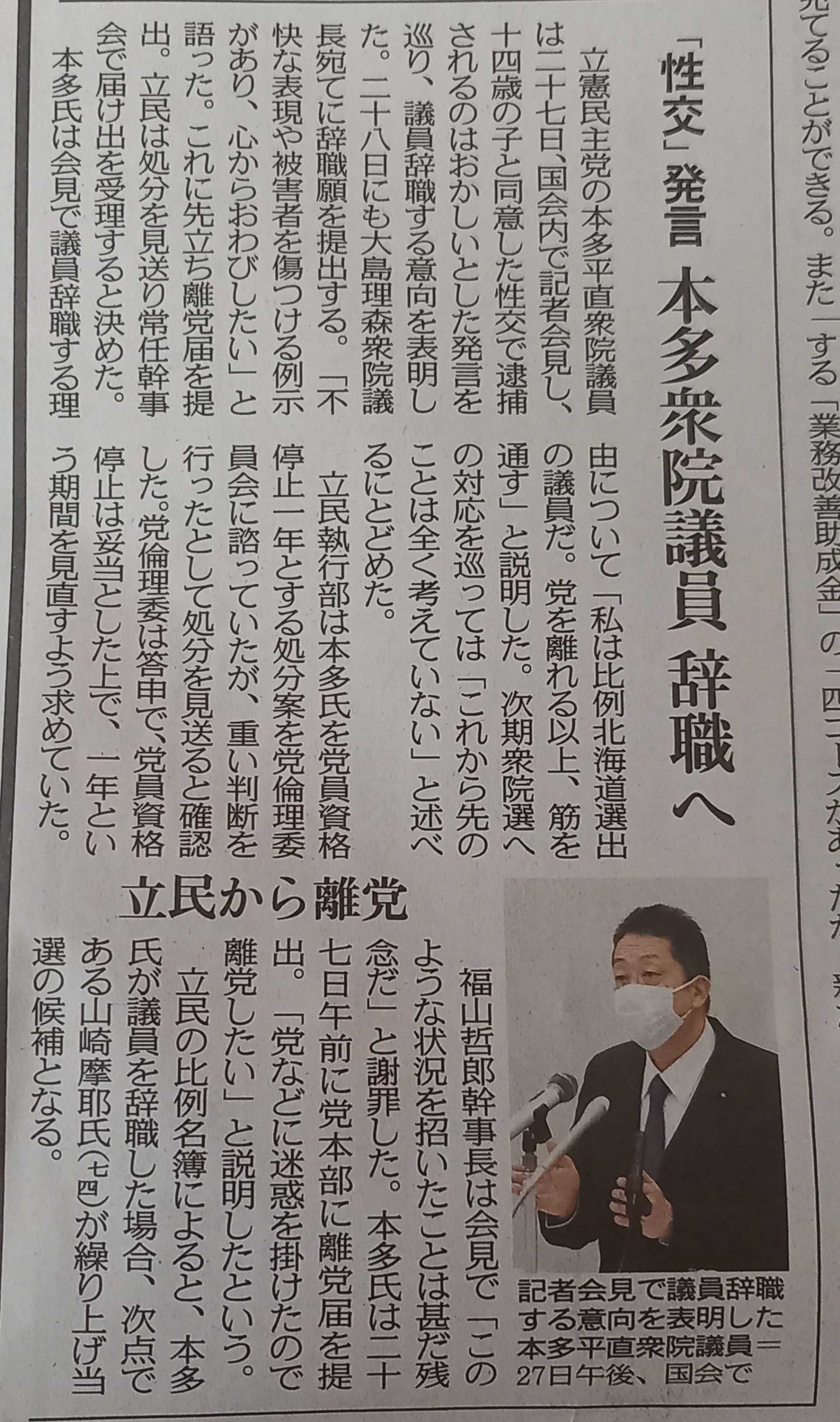 立憲民主党 本多平直議員の50歳近くの自分が14歳と性交したら同意があっても捕まることになるそれはおかしいなどと発言した結果立憲民主党の倫理委員会に1年間の党員資格停止で話し合うそうだ小西ひろゆき、森ゆうこ、蓮舫、杉尾を放置してる立憲民主党に倫理委員会なんてあったことに驚きだよ
