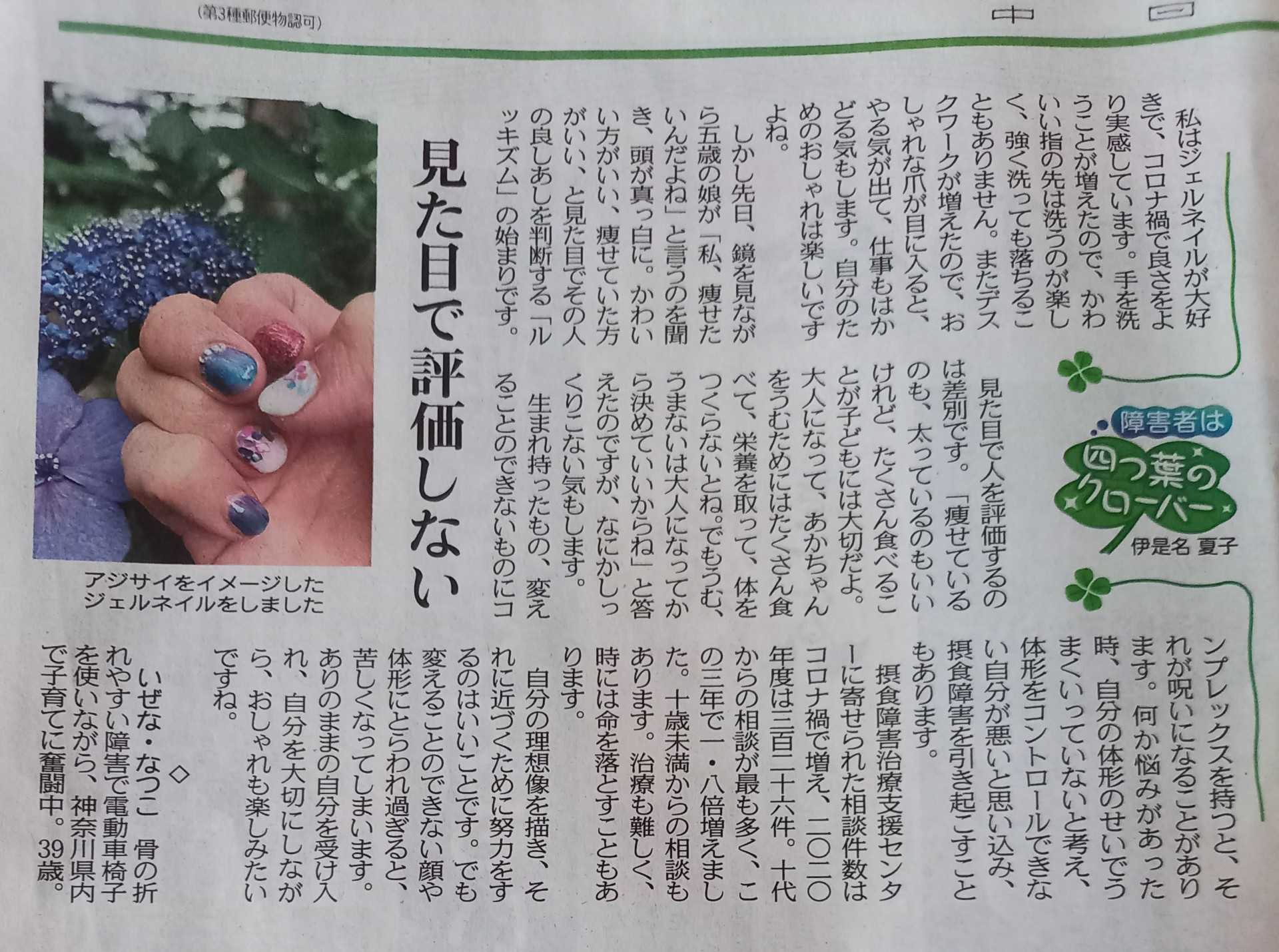 中日新聞 伊是名夏子 障害者は四つ葉のクローバー 見た目で評価しない ルッキズムと言いたいだけな